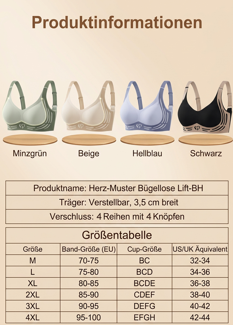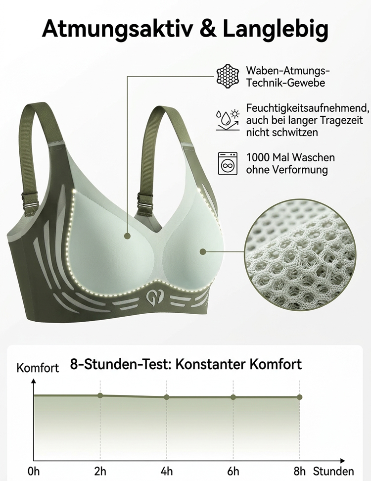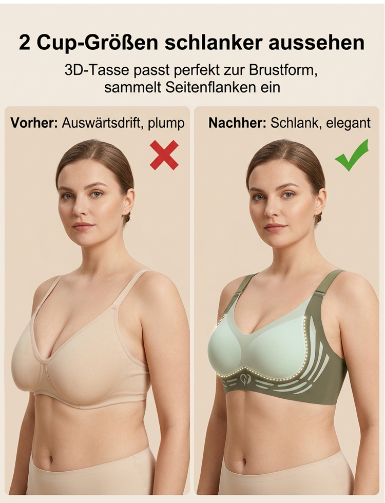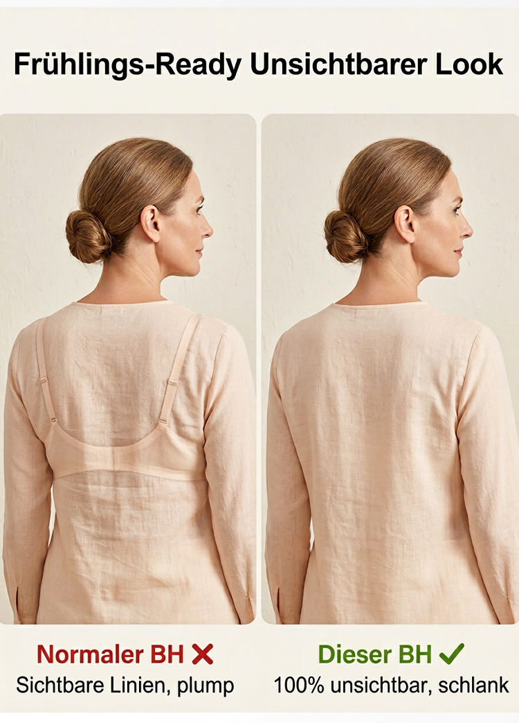 ✅ Optisch 2 Cups kleiner: Perfekter Minimizer-Effekt für eine schlankere Silhouette. ✅ Anti-Schwerkraft-Lift: Stabiler Halt ohne drückende Bügel – wie eine sanfte Umarmung. ✅ 100% Nahtlos: Absolut unsichtbar unter jedem Outfit, kein Abzeichnen von Nähten. ✅ Hautfreundlich: Atmungsaktives Material gegen Schwitzen, ideal für den ganzen Tag. 🎁 AKTION: HEUTE 50% RABATT! 🛡️ 15 Tage risikofreies Testen: Nicht zufrieden? 100% Geld-zurück-Garantie!