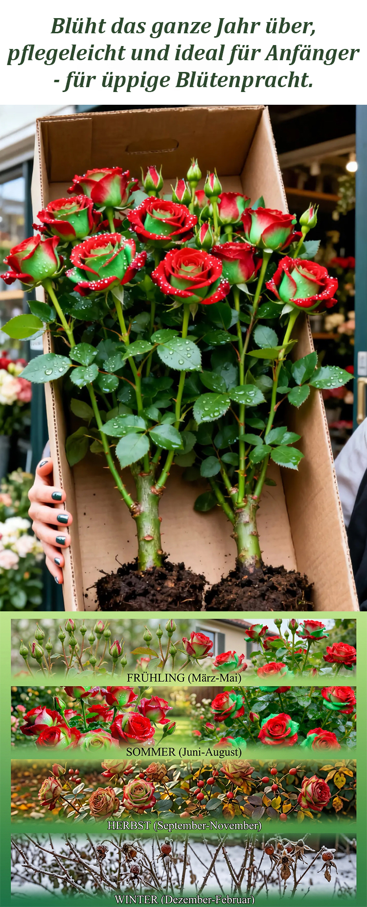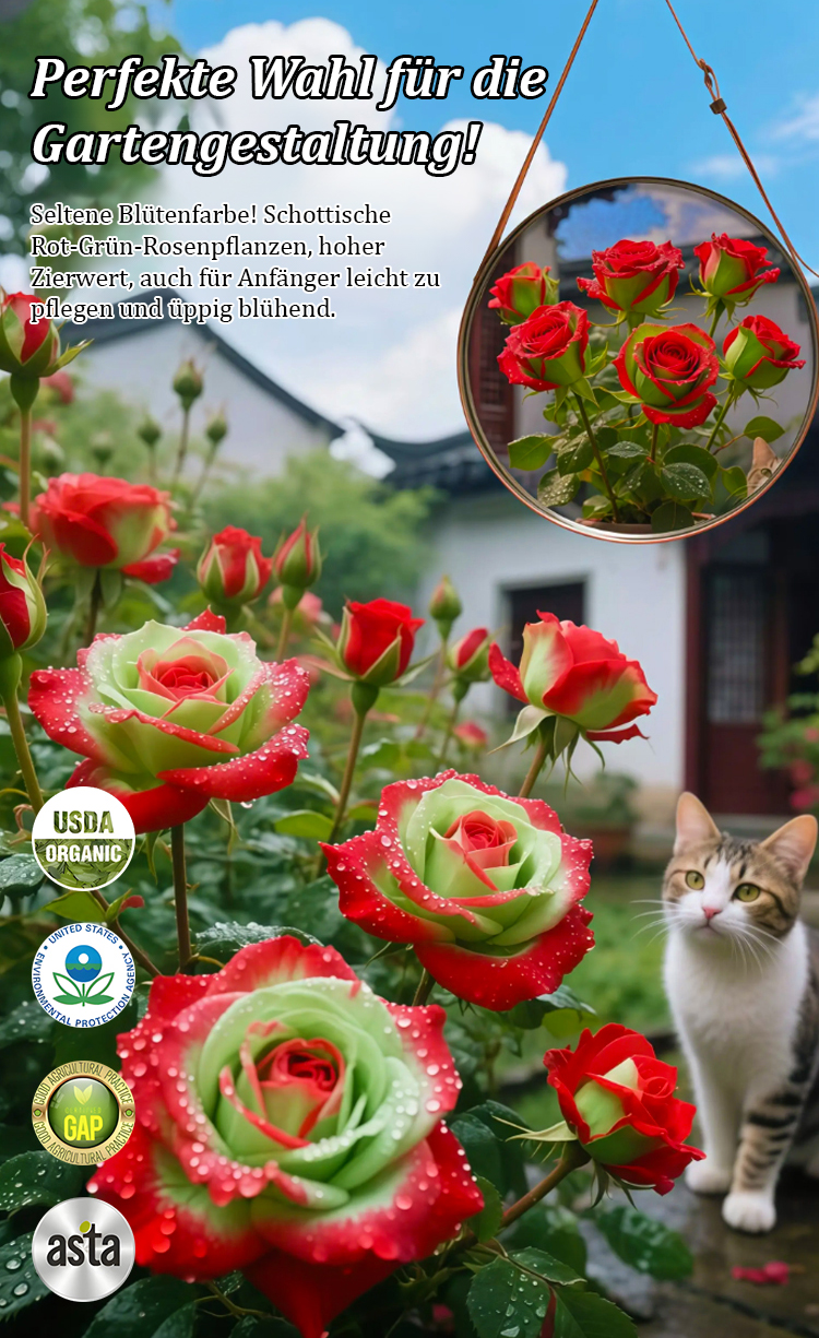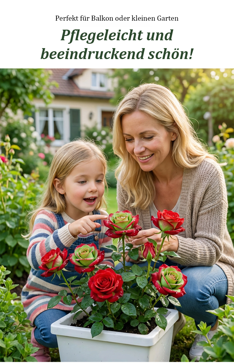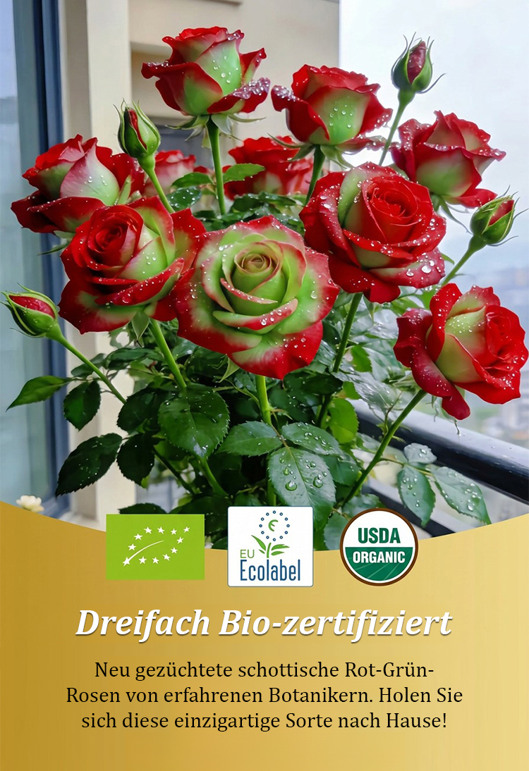 🌹Einzigartiges Farbspiel: Exklusive rot-grüne Blüten als Blickfang ⏳ Express-Blüte: Garantiert erste Blüten innerhalb von 30 Tagen ✨ Dauerblüher: Über 200 Tage Blütenpracht in jeder Saison ❄️ Robust& Winterhart: Kommt jedes Jahr kräftiger zurück 🎁 AKTION: Nur für kurze Zeit 1+1 GRATIS sichern 🛡️ Garantie: Volle Erstattung oder Ersatz bei Nichtblühen nach 1 Monat